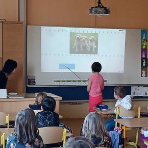 Děti z mateřské školy byly na návštěvě v naší ZŠ v prvních třídách a navštívily také koncertní sál a viděly lezeckou stěnu, moc se jim u nás líbilo. V.M.