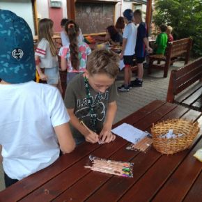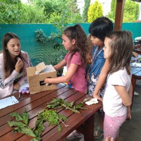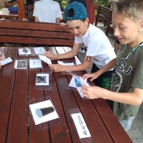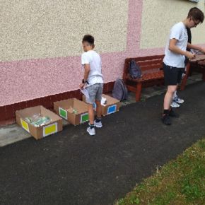 Žáci devátého ročníku si pro své mladší spolužáky připravili úkoly s ekologickou tématikou v prostorách školní zahrady.