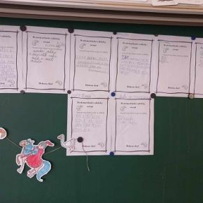 Na začátku měsíce jsme se věnovali tématu Dušičky, 11. listopadu jsem si připomněli svátek sv. Martina. Také si děti zkusily napsat recept na svatomartinské rohlíčky. A na konci měsíce nás čeká Jarmark pětadvacítky, na který děti vyráběly výrobky s vánoční tematikou.